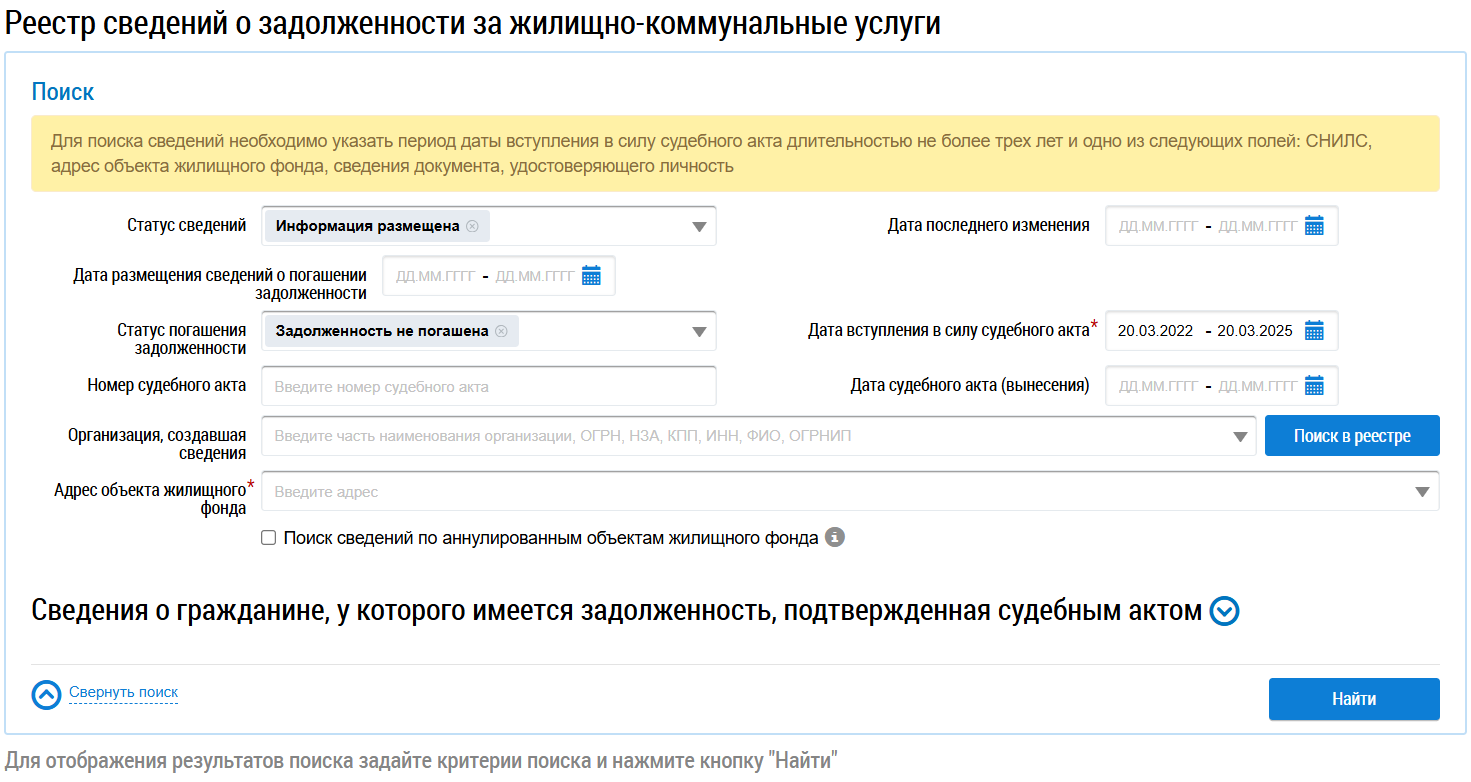 Реестр сведений о задолженности за жилищно-коммунальные услуги