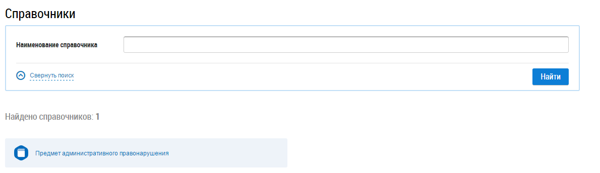Для осуществления операций со справочником Предмет административного правонарушения в блоке Справочники выберите пункт Справочники (Контекстное меню раздела «Справочники»).