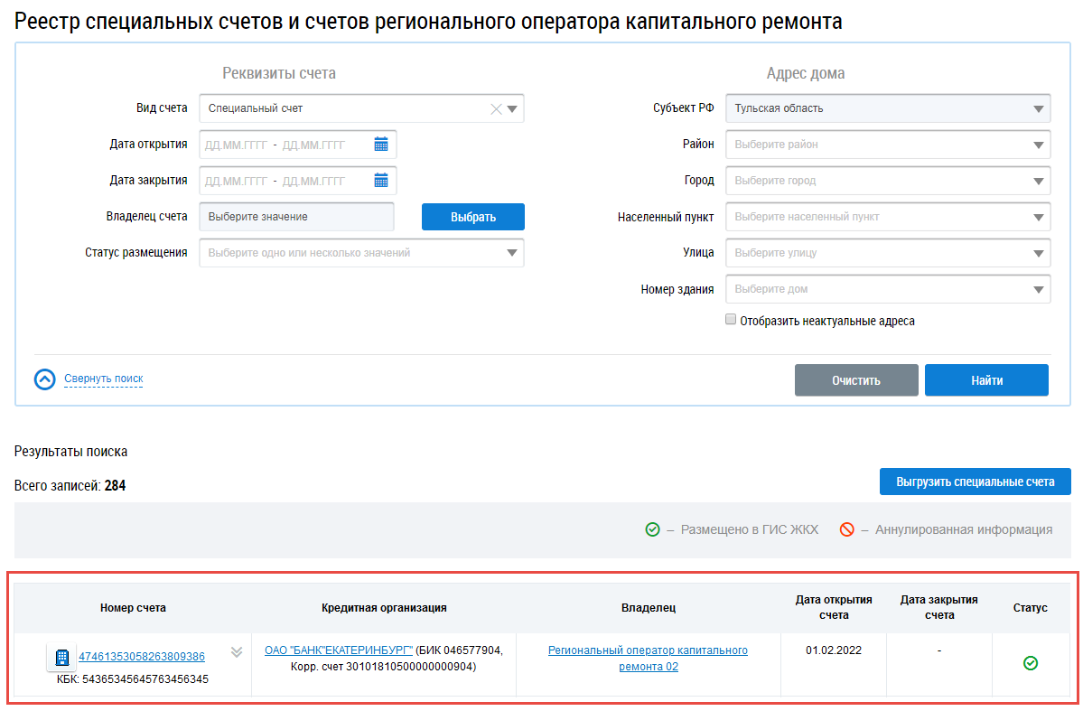 Поиск по реестру счетов