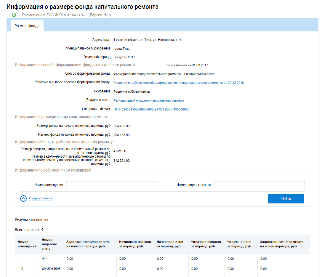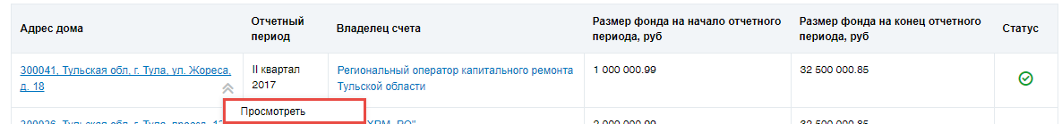 Просмотр информации о размере фондов капитального ремонта