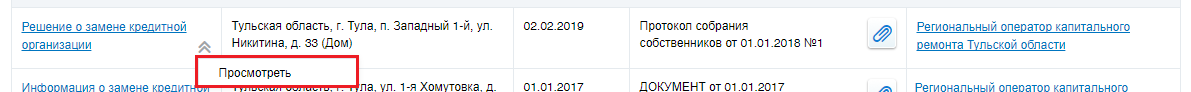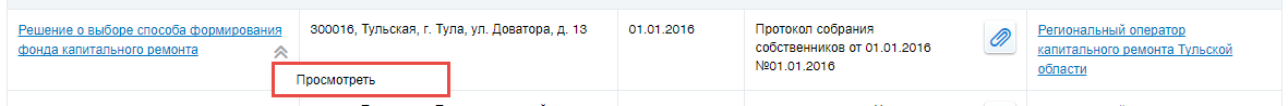 Для просмотра решения о способе формирования фонда капитального ремонта выберите пункт контекстного меню решения Просмотреть.