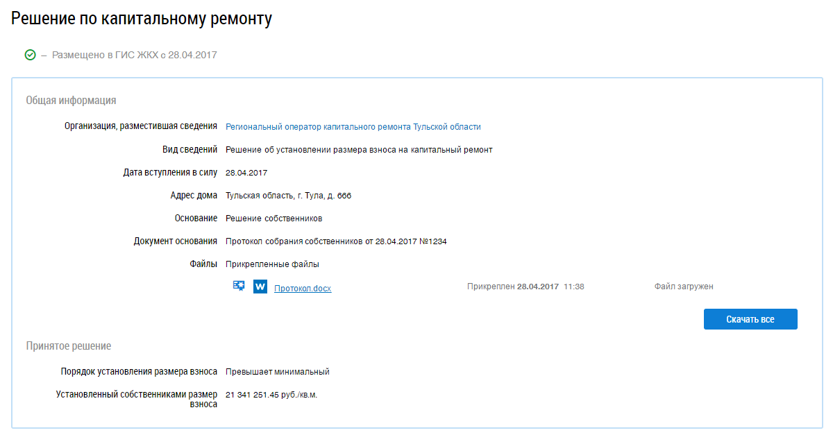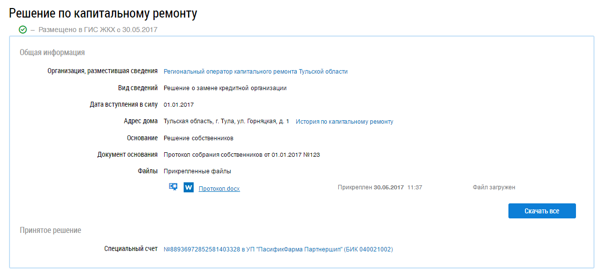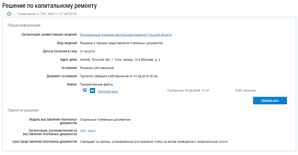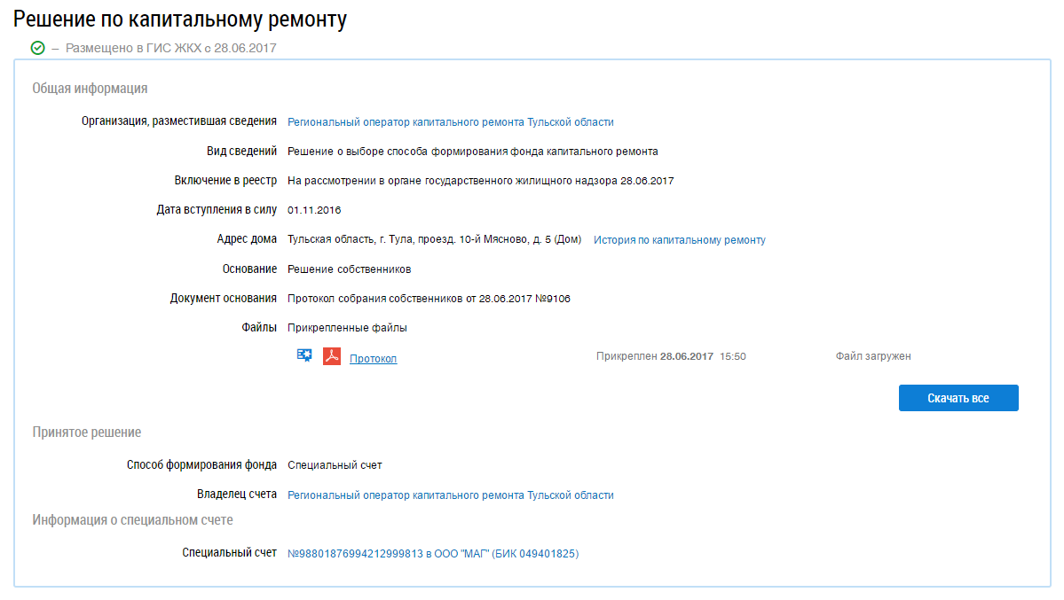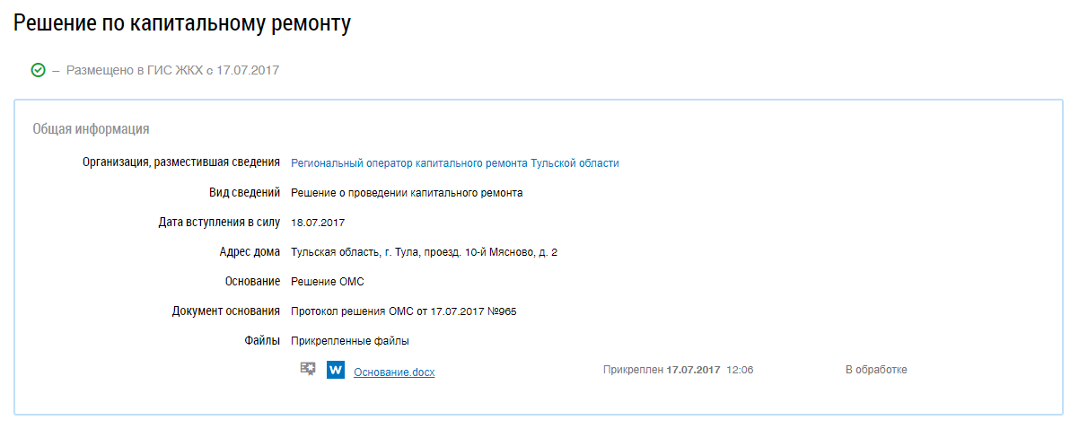 Отображается страница просмотра решения по капитальному ремонту.