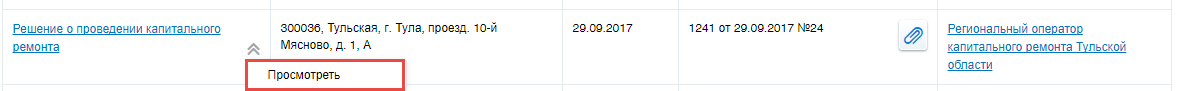 Для просмотра решения о проведении капитального ремонта выберите пункт контекстного меню решения Просмотреть.