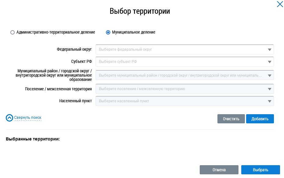 территории. Рис. 4. Окно «Выбор территории» Установите переключатель в положение