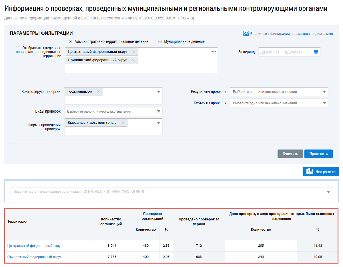 Для отображения сведений о проверках, проведенных по определенным территориям, нажмите на кнопку
