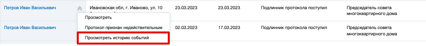 Для просмотра истории событий выберите пункт контекстного меню Просмотреть историю событий.