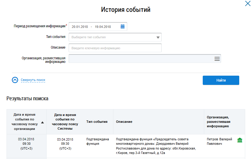 Просмотр истории событий