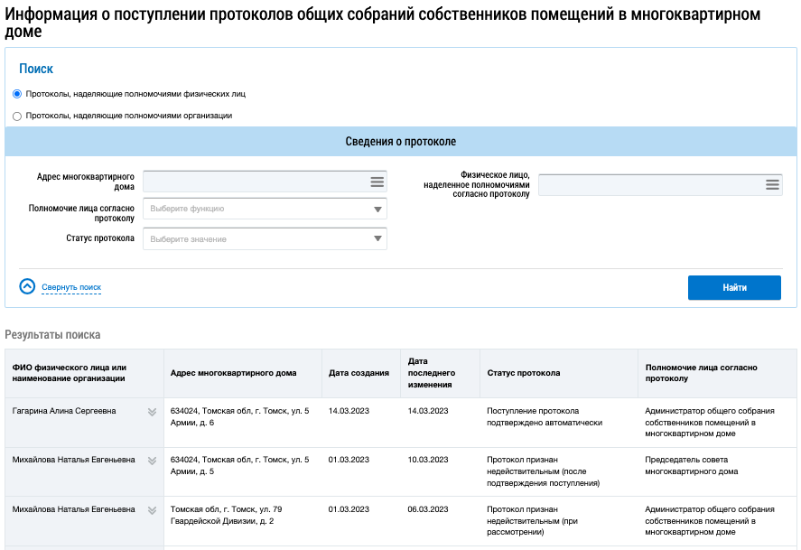 Информация о поступлении протоколов общих собраний собственников помещений в многоквартирном доме