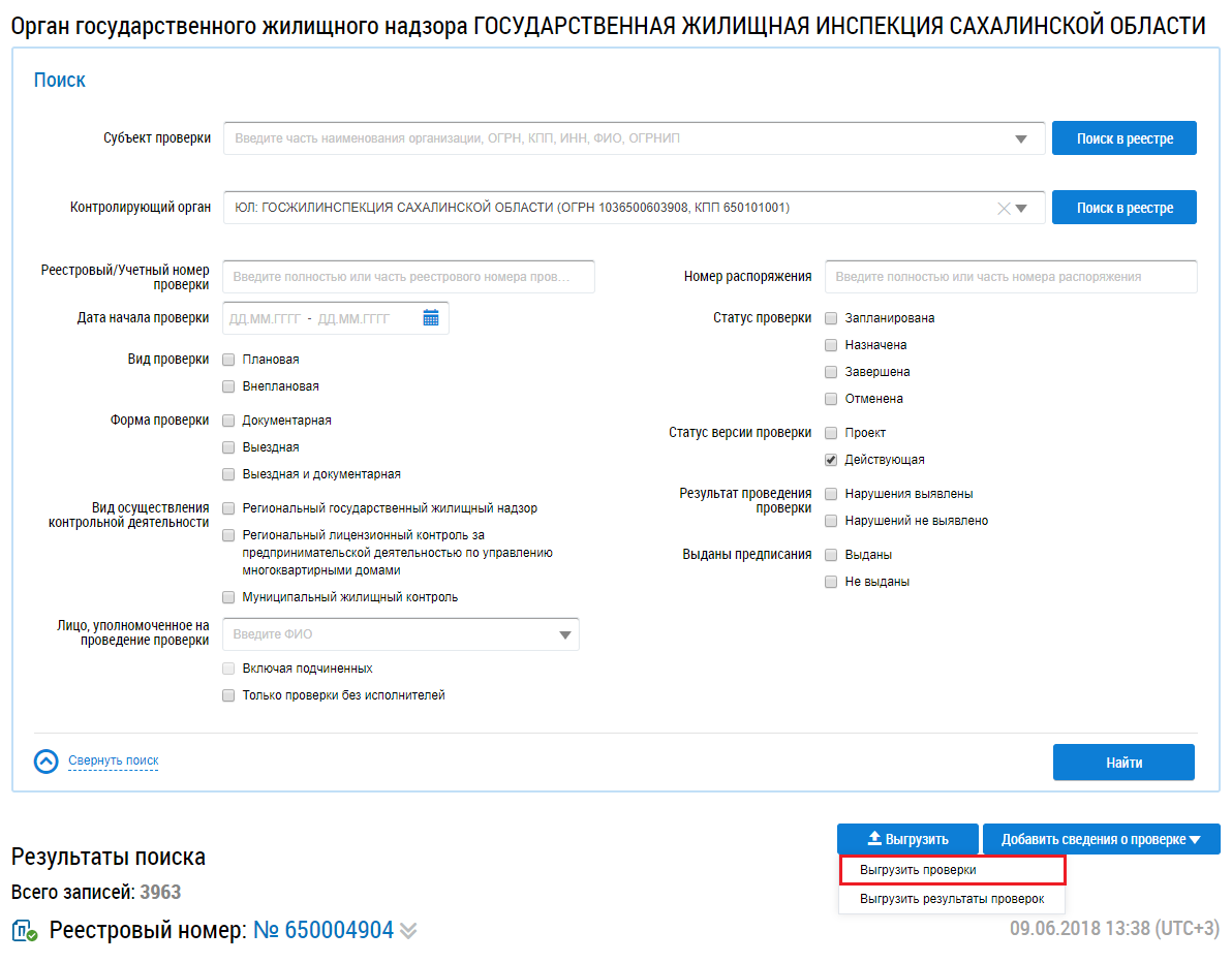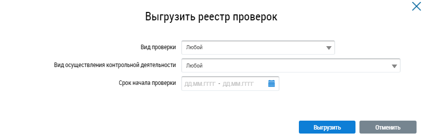 Отображается окно Выгрузить реестр проверок.