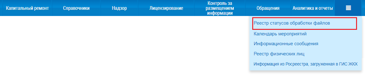 Отображается страница Реестр статусов обработки файлов. Результат обработки файла заносится в столбец Статус обработки.