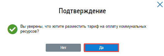 В отобразившемся окне подтверждения размещения тарифа нажмите на кнопку Да.