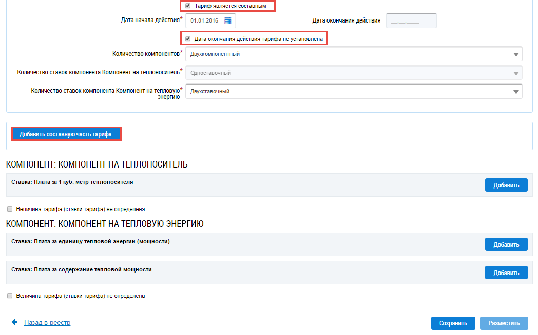 В случае, если тариф является составным, установите флажок в соответствующее поле.
