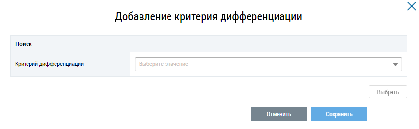 Для осуществления поиска критерия дифференциации заполните поле Критерий дифференциации, выбрав необходимое значение из выпадающего списка, и нажмите на кнопку Выбрать.