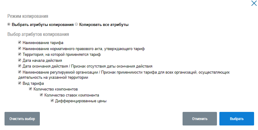В отобразившемся окне выберите режим и атрибуты копирования, нажмите на кнопку Выбрать.