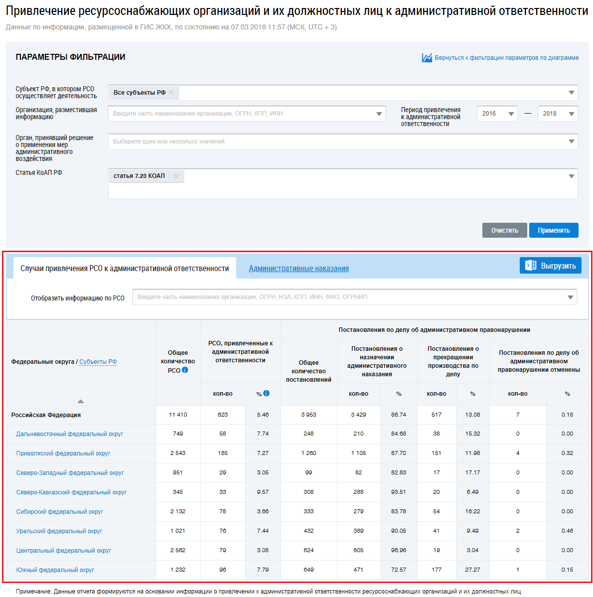 Отчет о привлечении РСО и их должностных лиц к административной ответственности.