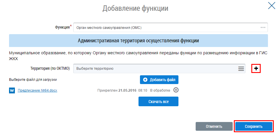При добавлении второй и последующих функции в ГИС ЖКХ требуется обязательное добавление(размещение) соглашения, подтверждающего, что Орган местного самоуправления может осуществлять деятельность на выбранной территории.