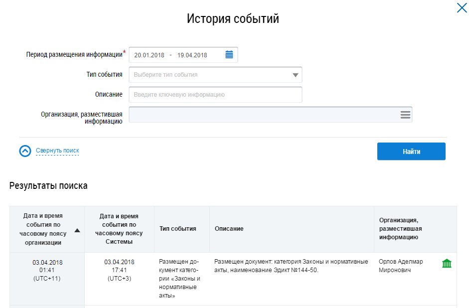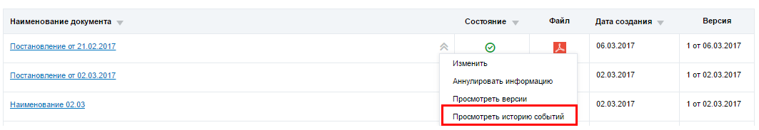 Для просмотра истории событий раскройте контекстное меню документа и выберите пункт Просмотреть историю событий.