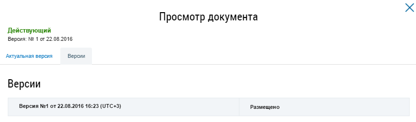 Для просмотра версии документа нажмите на гиперссылку с номером версии. Отображается окно просмотра версии.