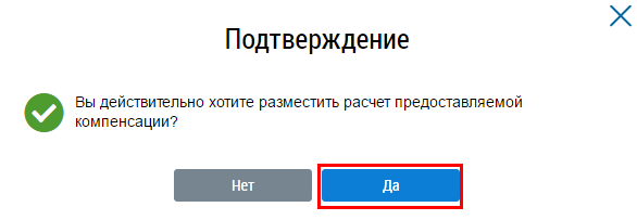 Подтвердите действия по размещению расчета предоставляемой компенсации и нажмите на кнопку Да.