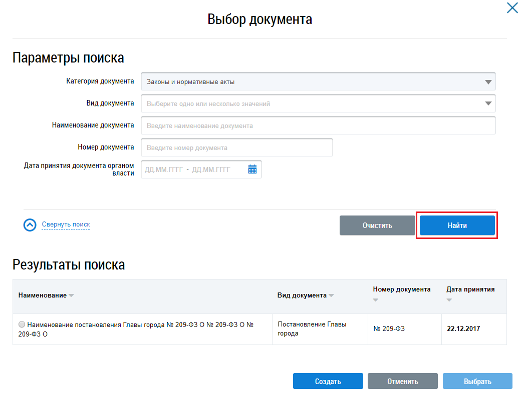 В отобразившемся окне задайте параметры поиска и нажмите на кнопку Найти.