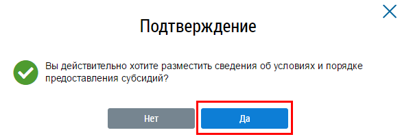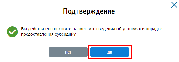 Подтвердите действия по размещению информации о порядке предоставления субсидий.