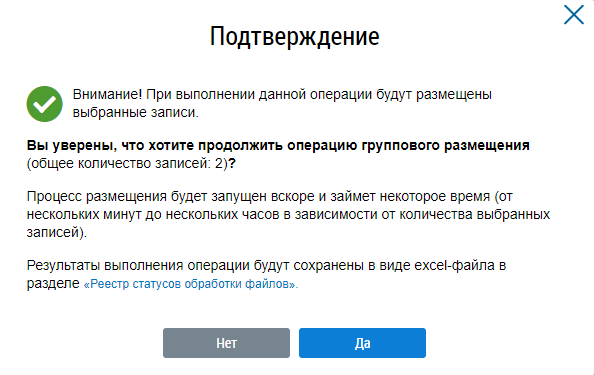 Файл добавлен в очередь для обработки. Посмотреть статус обработки можно на странице Реестр статусов обработки файлов.