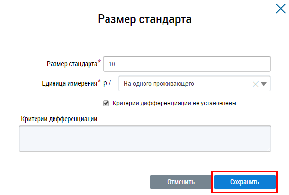 Заполните обязательные поля. При необходимости установите флажок в поле Критерии дифференциации не установлены и нажмите на кнопку Сохранить.