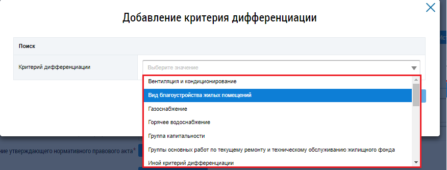 Для этого в окне Добавление критерия дифференциации нужно выбрать значение Месторасположение дома согласно Федеральный информационной
