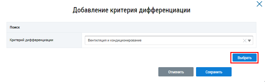 В выпадающем списке выберите критерий дифференциации. Затем нажмите на кнопку Выбрать.