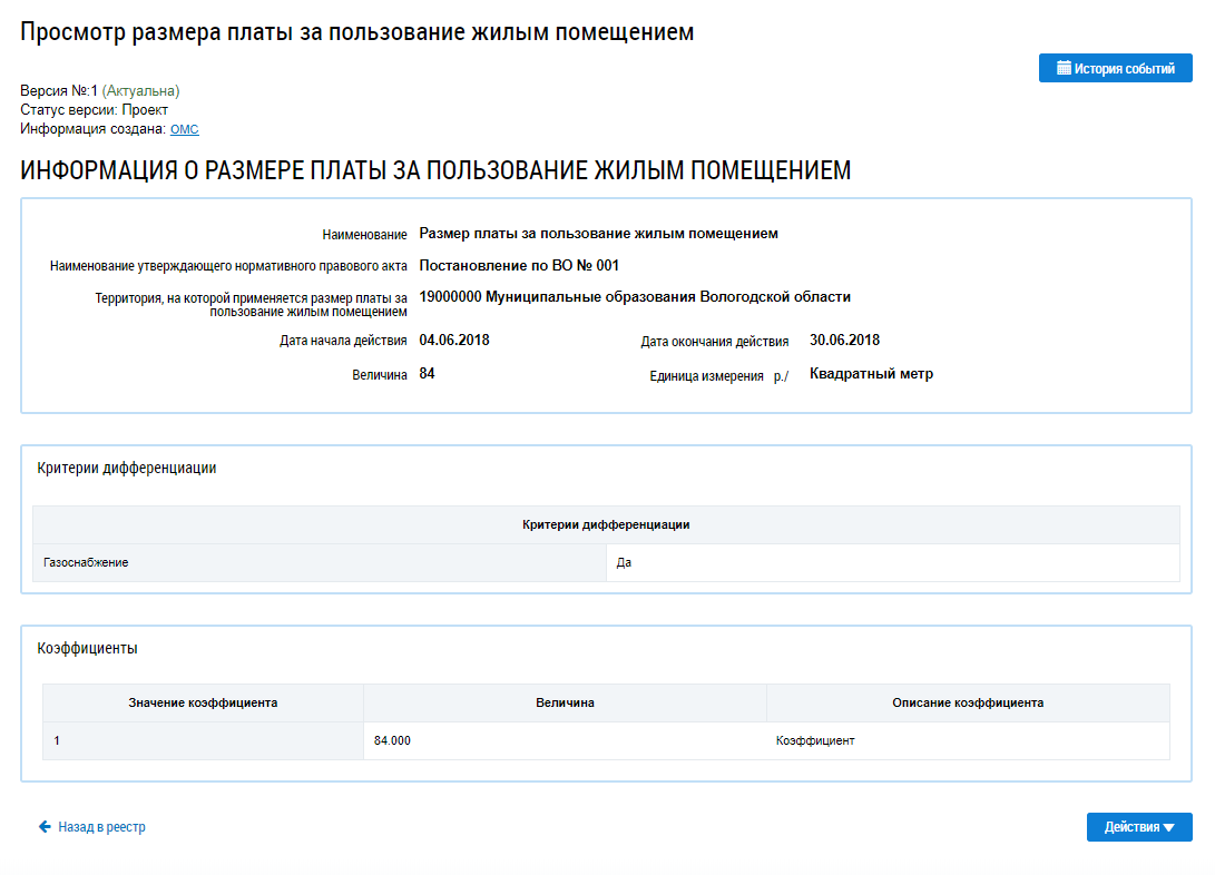 Просмотр размера платы за пользование жилым помещением