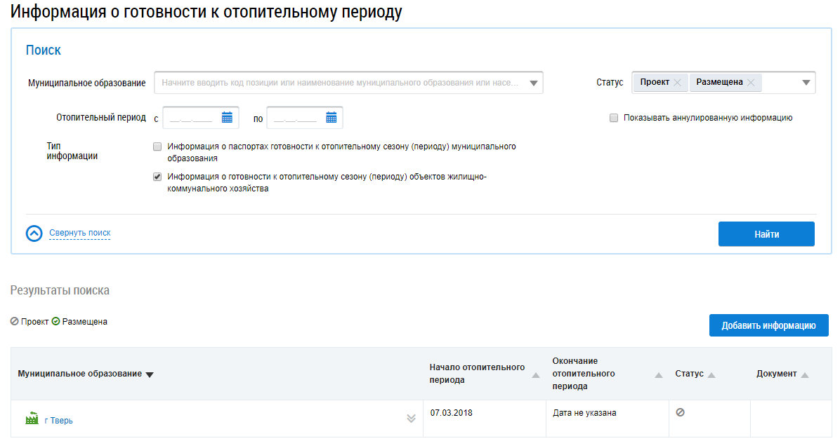 Данный раздел доступен после предоставления представителю организации права доступа «Операции с информацией о готовности к отопительному периоду объектов жилищно-коммунального хозяйства». Для получения необходимых прав обратитесь к Администратору организации.