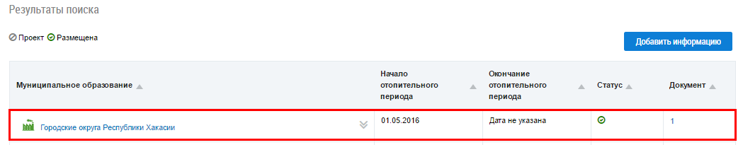 Отображаются результаты поиска, соответствующие заданным параметрам поиска.