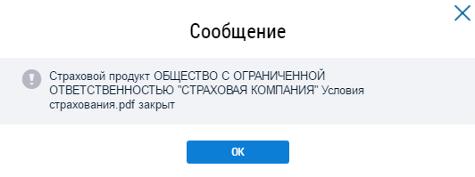 Отображается информационное сообщение о закрытии страхового продукта.