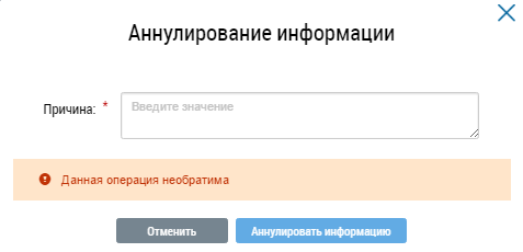 В отобразившемся окне Аннулирование информации напишите причину и нажмите на кнопку Аннулировать информацию.