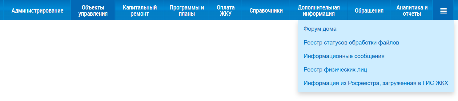При нажатии на раздел горизонтального навигационного меню «» (Прочее) отображается контекстное меню раздела.