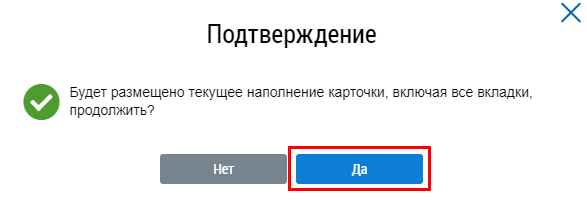 Подтвердите размещение, нажав на кнопку Да.