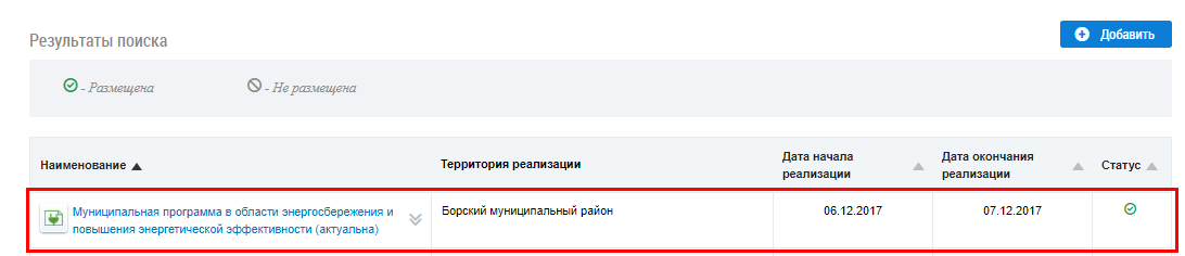 В блоке результатов поиска отображаются программы, соответствующие установленным параметрам поиска.