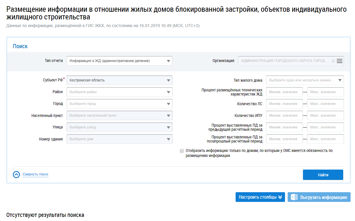 Данный раздел доступен после предоставления представителю организации права доступа Размещение информации в отношении жилых домов блокированной застройки, объектов индивидуального жилищного строительства. Для получения необходимых прав обратитесь к Администратору организации.
