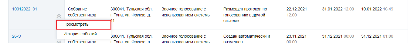 Просмотр протокола общего собрания собственников