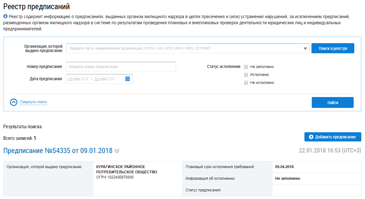 Реестр предписаний