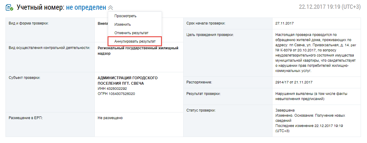 Аннулирование результата проведения контрольного (надзорного) мероприятия