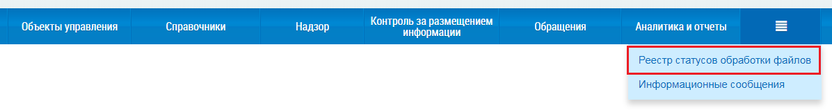 Отображается страница Реестр статусов обработки файлов. Результат обработки файла заносится в столбец Статус обработки.