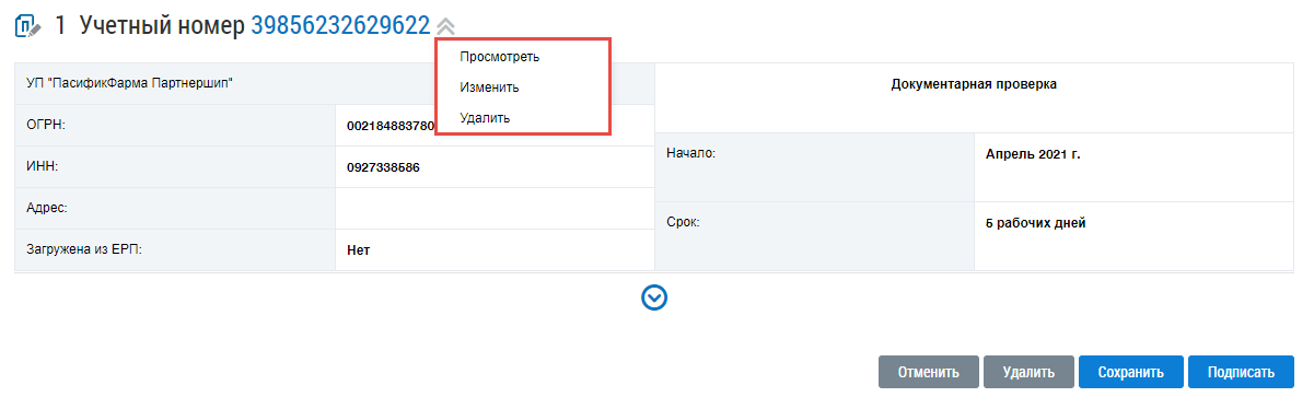 Чтобы внести изменения или удалить план контрольных (надзорных) мероприятий со статусом Черновик, выберите соответствующий пункт контекстного меню.