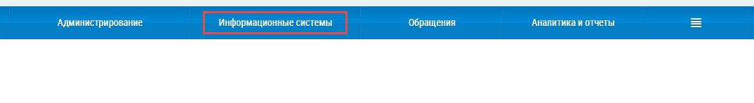 Для перехода на страницу Информационные системы выберите раздел горизонтального навигационного меню Информационные системы.