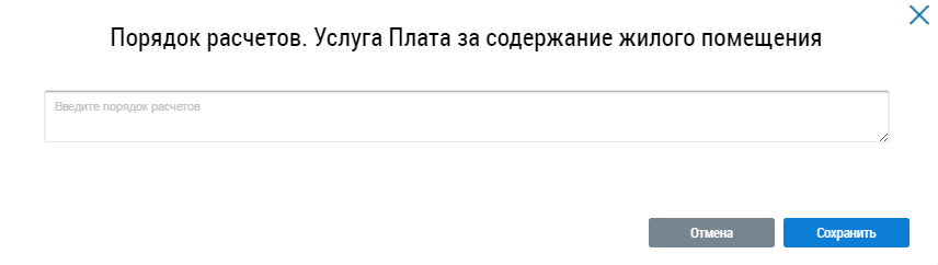 Введите порядок расчетов услуги и нажмите на кнопку Сохранить. Для отмены операции нажмите на кнопку Отменить.