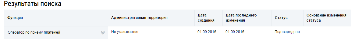 Рис. 2. Страница «Сведения о функциях организации». Блок результатов поиска