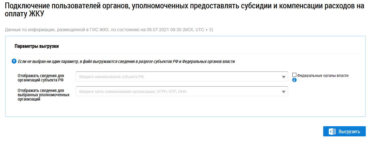 Рис. 2. Страница «Подключение пользователей органов, уполномоченных предоставлять субсидии и компенсации расходов на оплату ЖКУ»