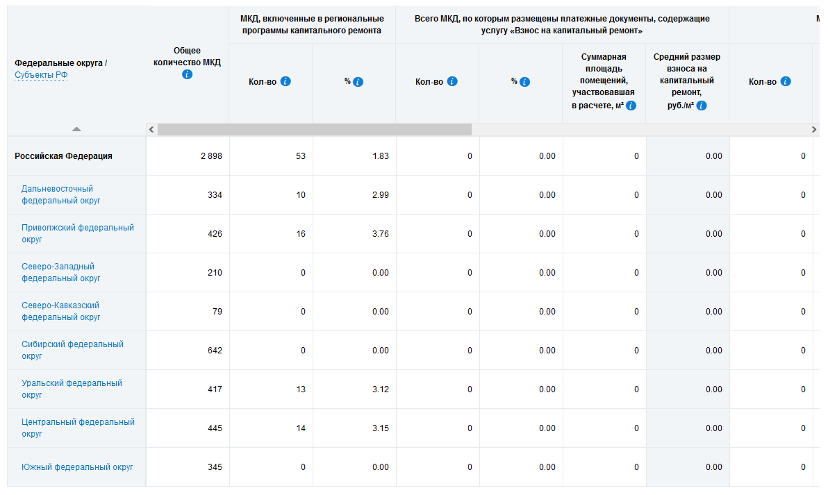 Рис. 7. Таблица с информацией о размере взносов на капитальный ремонт на дочерних территориях