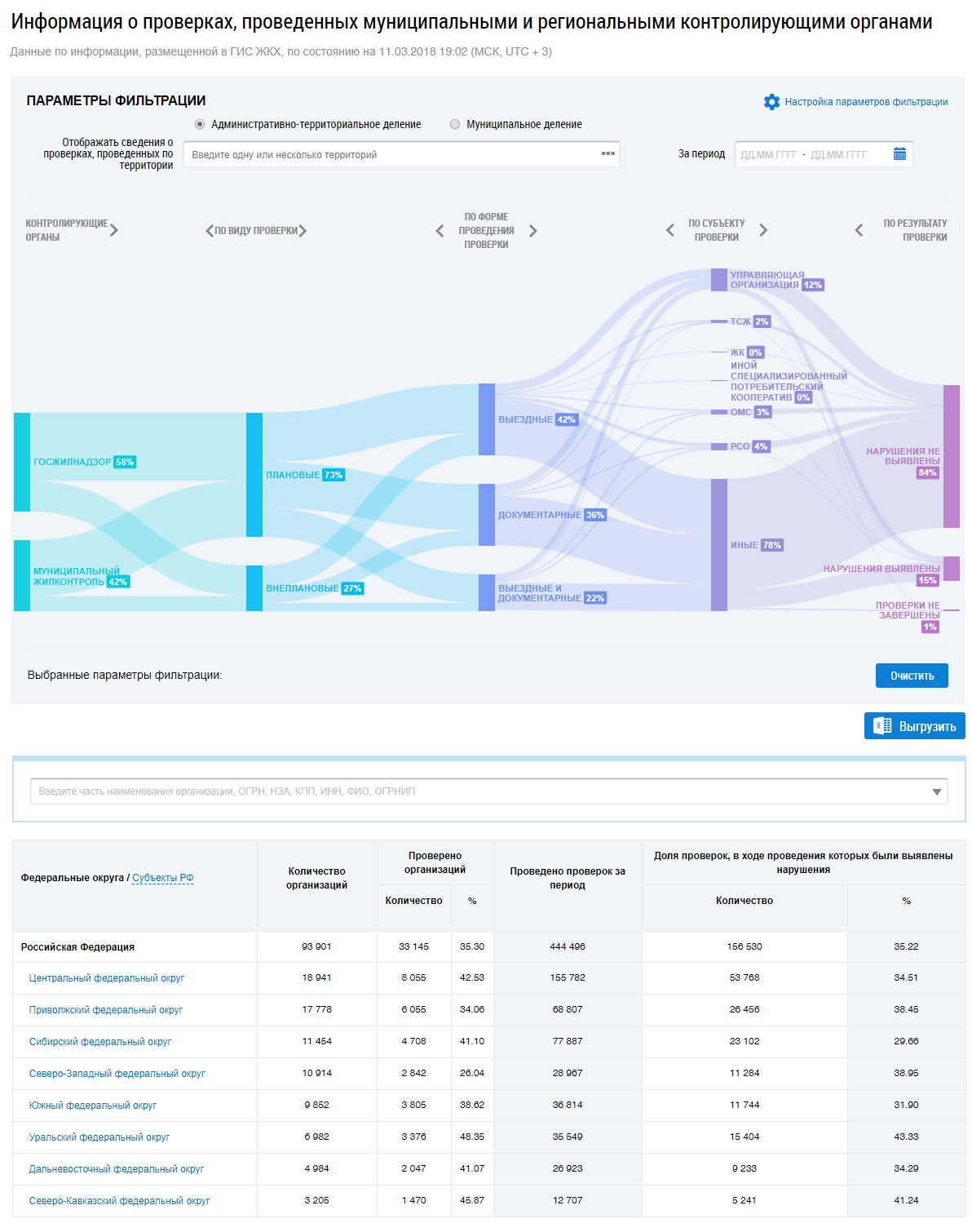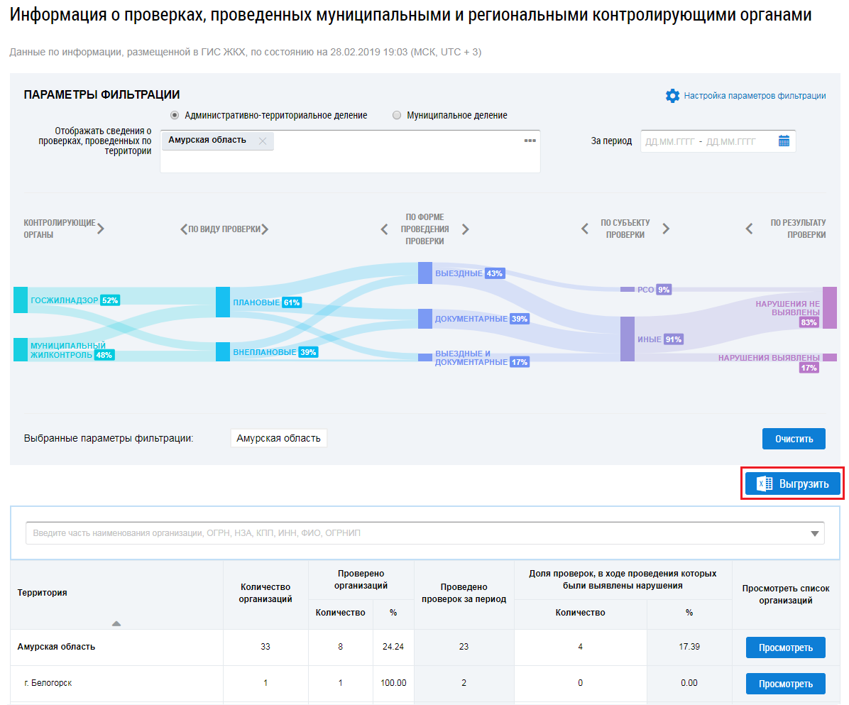 Для отображения сведений о проверках, проведенных по определенным территориям, нажмите на кнопку