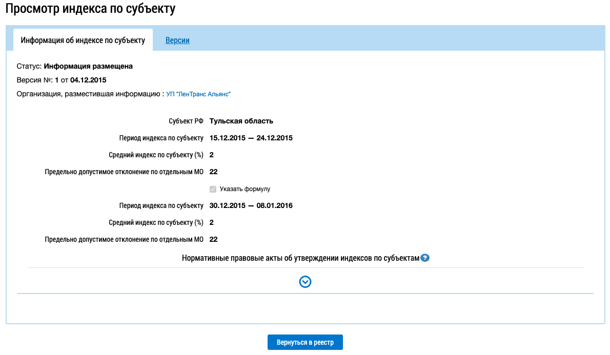 Для просмотра индексов по субъекту выберите пункт контекстного меню Просмотреть.